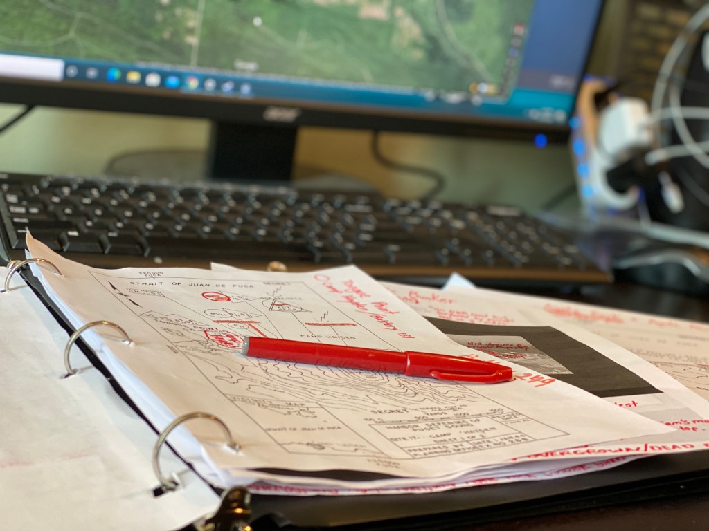 The cluster we are concentrating on is close to Port Angeles. This cluster features a few bunkers and batteries that are easier to get to but there one in particular that has been tough to nail down the location of. We’ve read a few vague blogs about accessing this one. Our most concrete information has come from combing old declassified WWII maps and some more current DNR (Depart of Natural Resources) maps to pin down a likely location and our best route there.